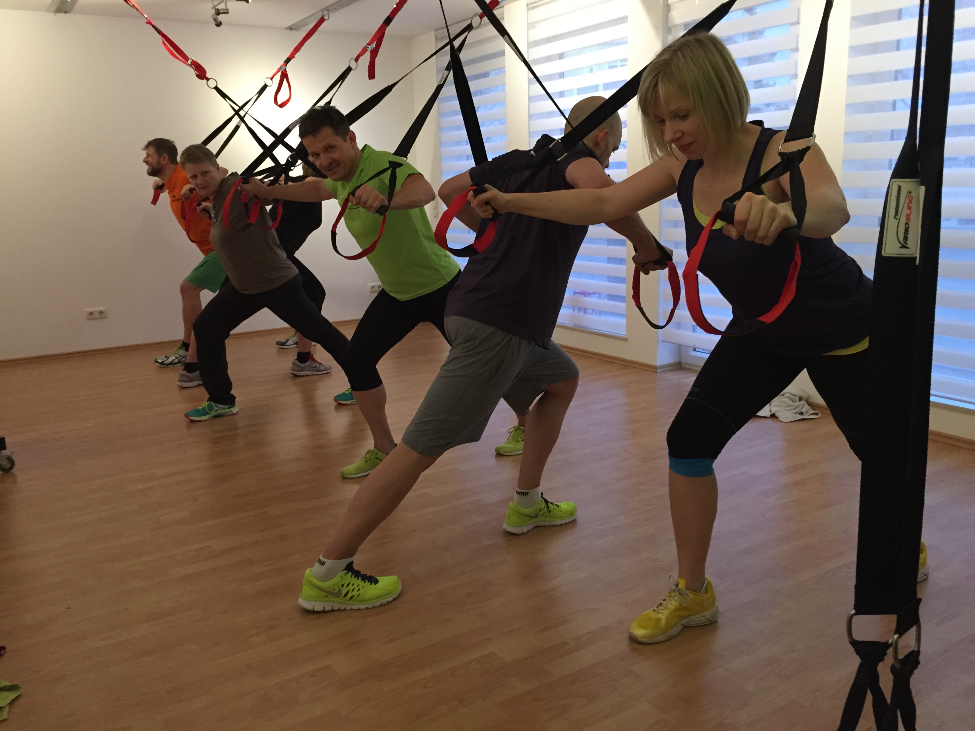 „Da ich schon ziemlich viel Sport treibe – auch viel Kräftigung und Stabilisierung – stand ich den Schlingen und der Effektivität zunächst sehr kritisch gegenüber. Nachdem der erste Muskelkater auch noch recht erträglich ausgefallen ist, fühlte ich mich bestätigt. Viel deutlicher waren dann jedoch die positiven Wirkungen bemerkbar: bessere Körperspannung und Haltung und das mit nur einer Einheit in der Woche. Und die Stunde ist sehr kurzweilig und macht richtig Spaß, bietet immer wieder neue Herausforderungen. Für mich kein Pflicht- sondern längst Wunschtermin ;-)“ Kerstin, 40 Jahre